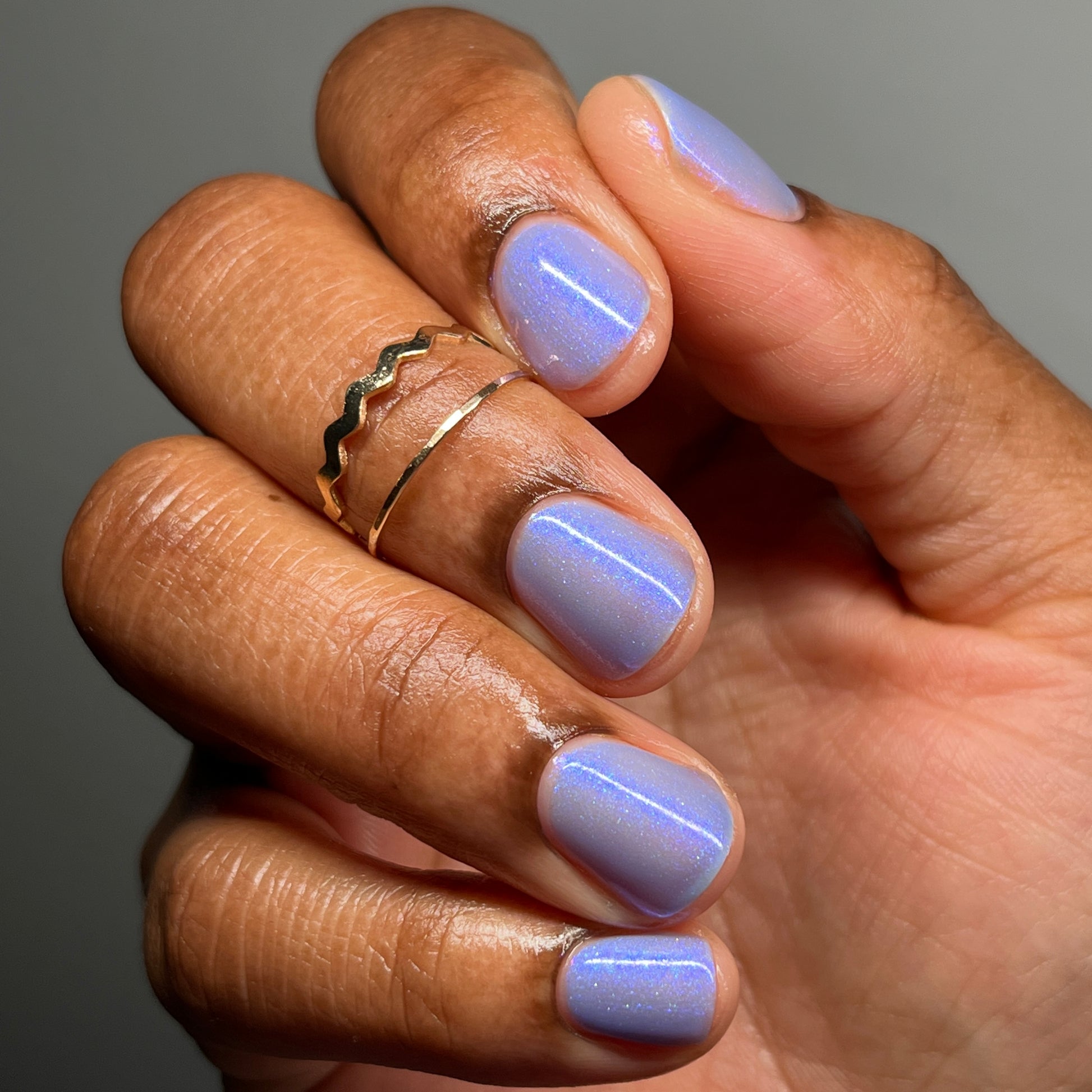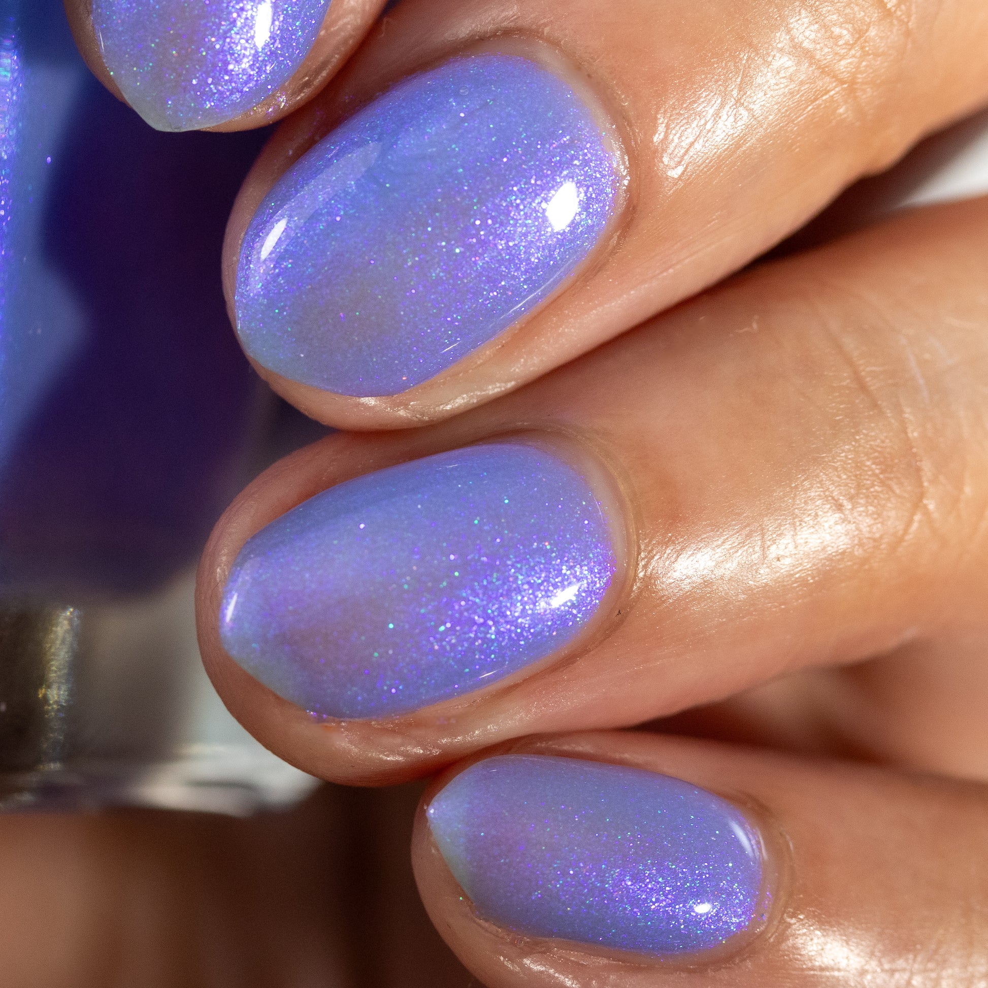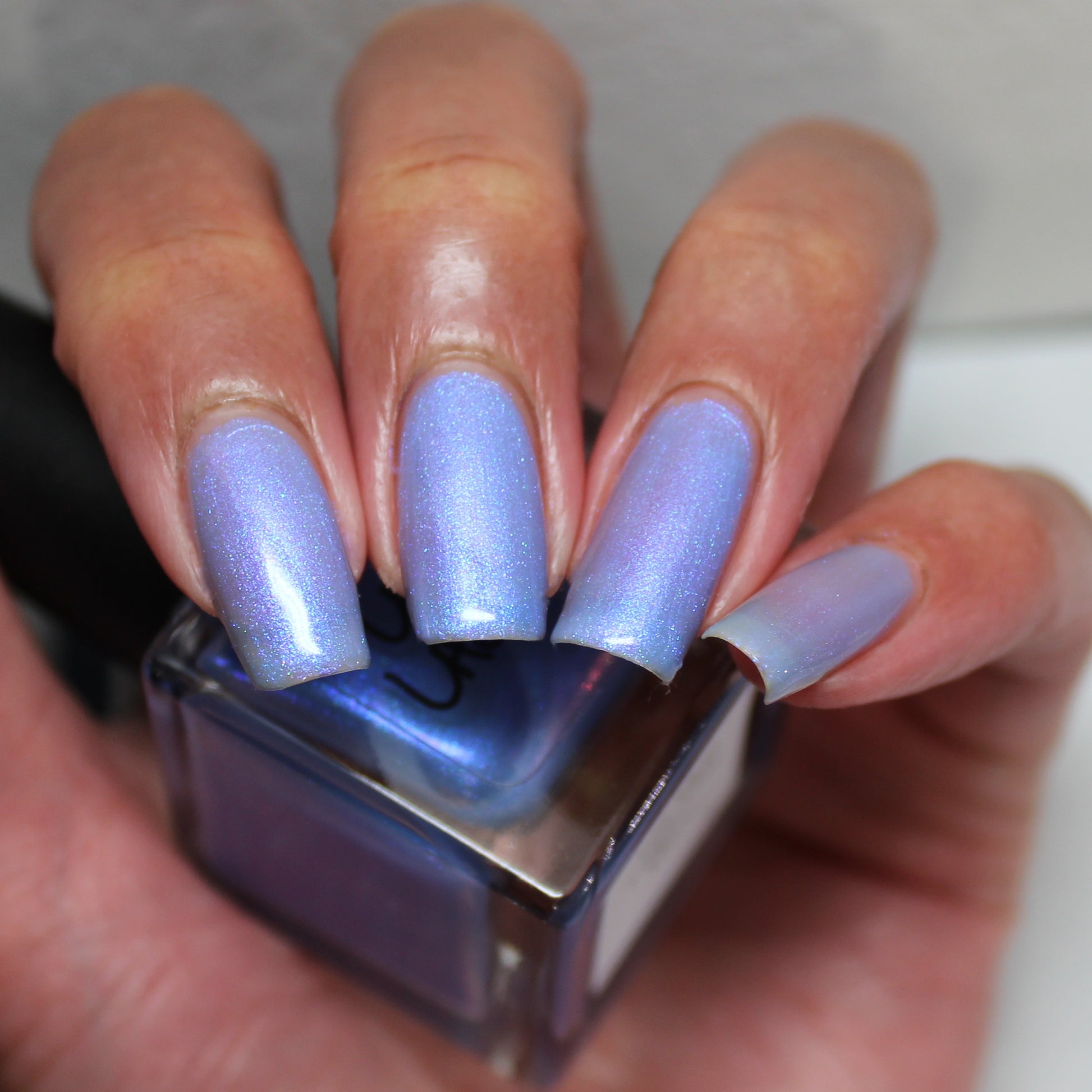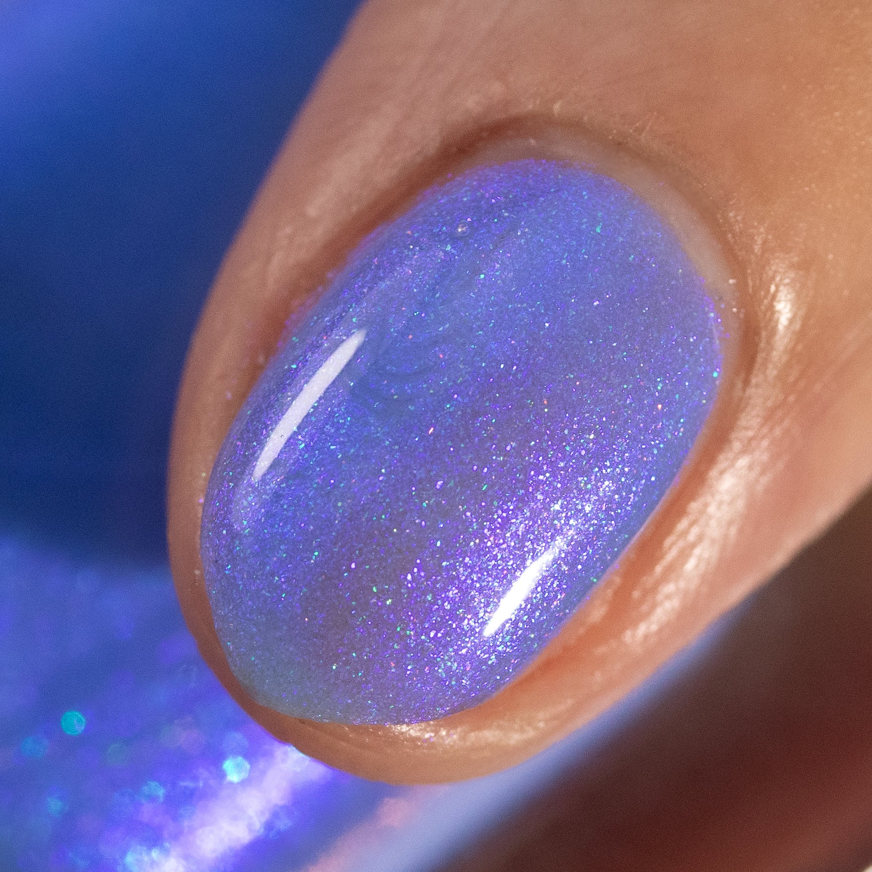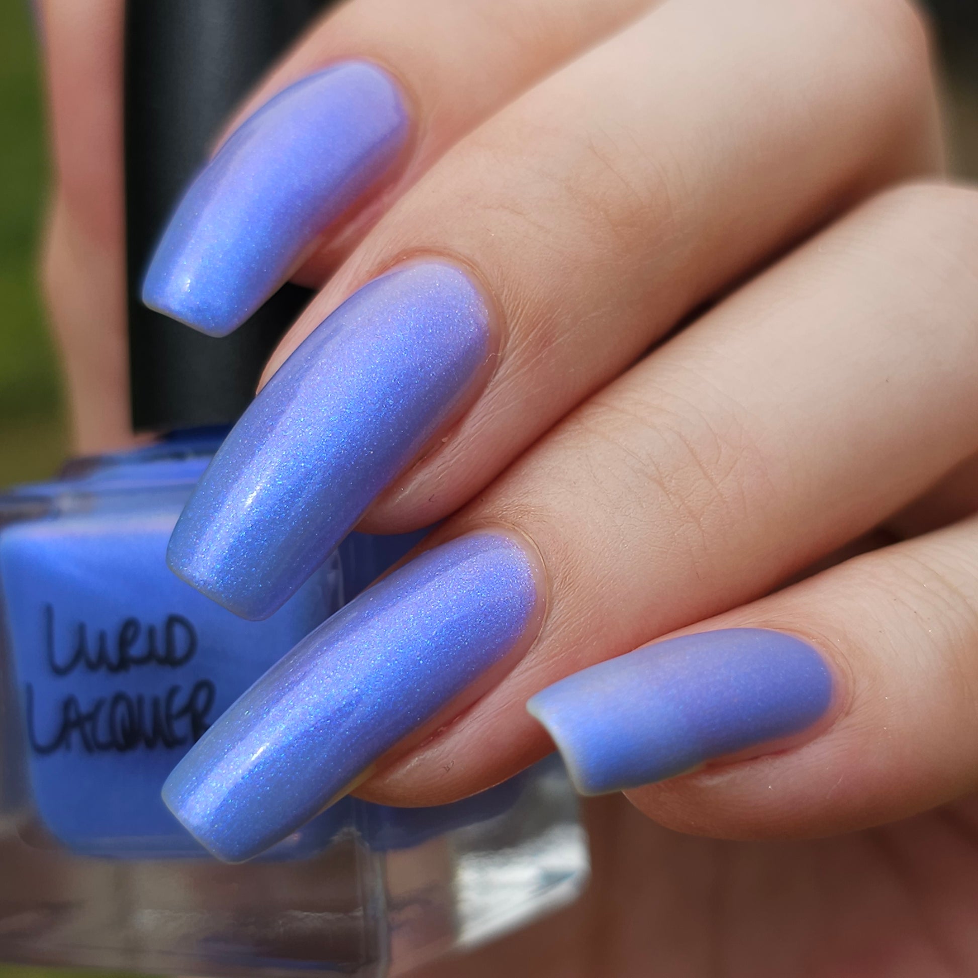 A periwinkle base with indigo shimmer that shifts to red at extremes
