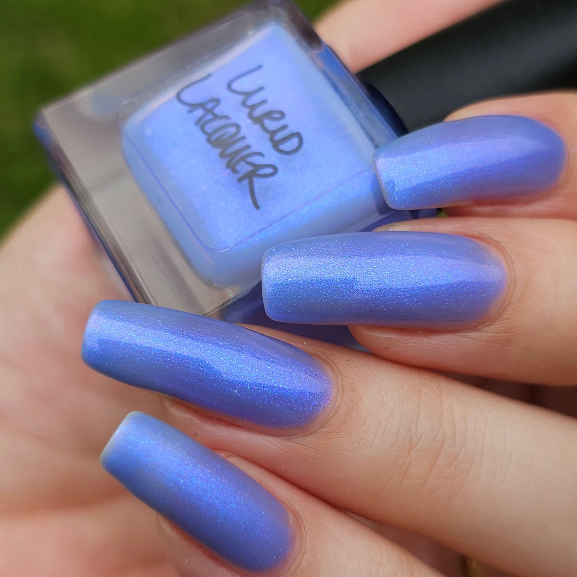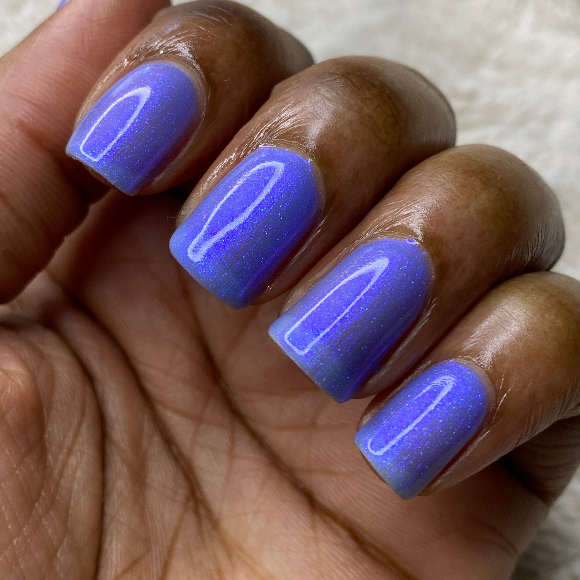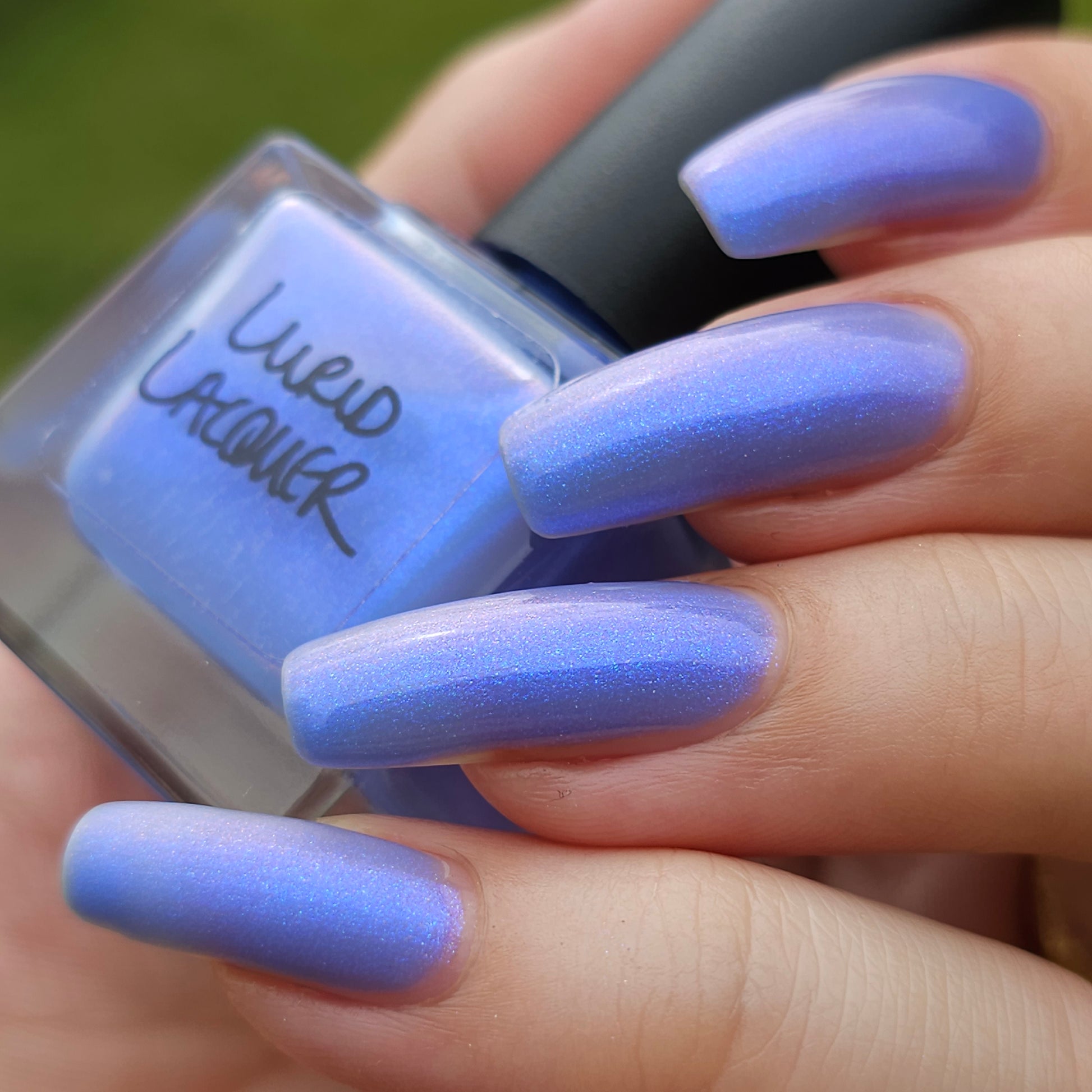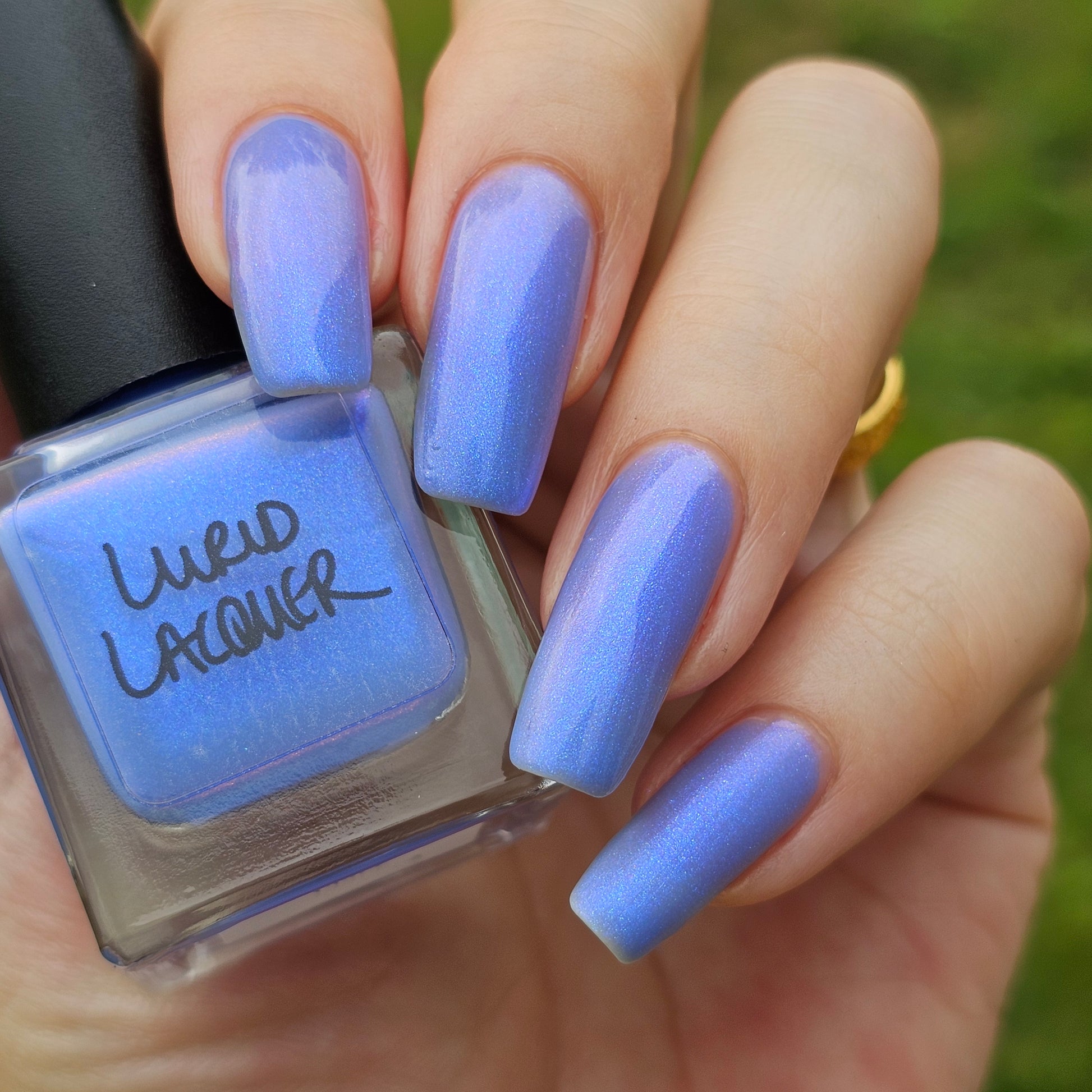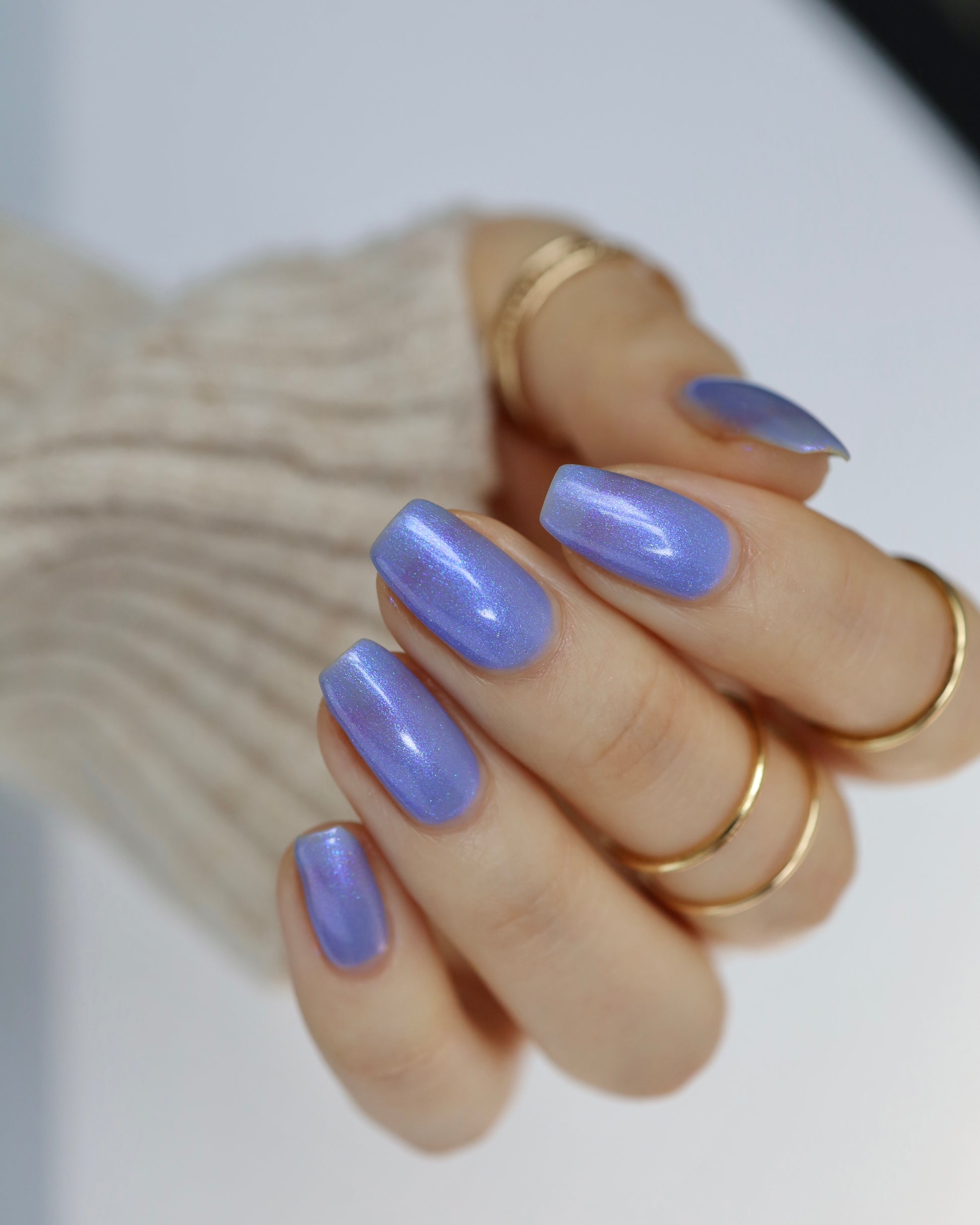 A periwinkle base with indigo shimmer that shifts to red at extremes