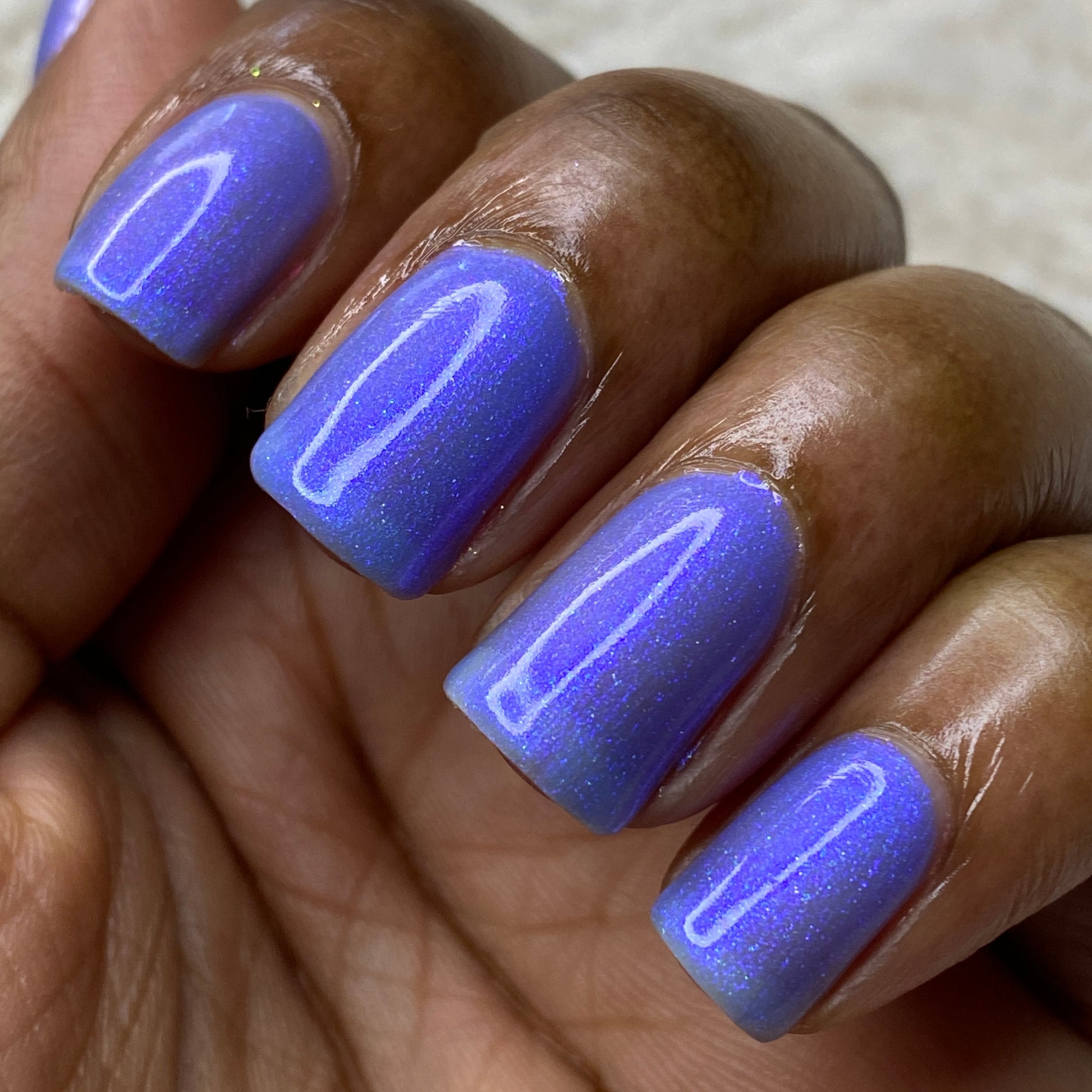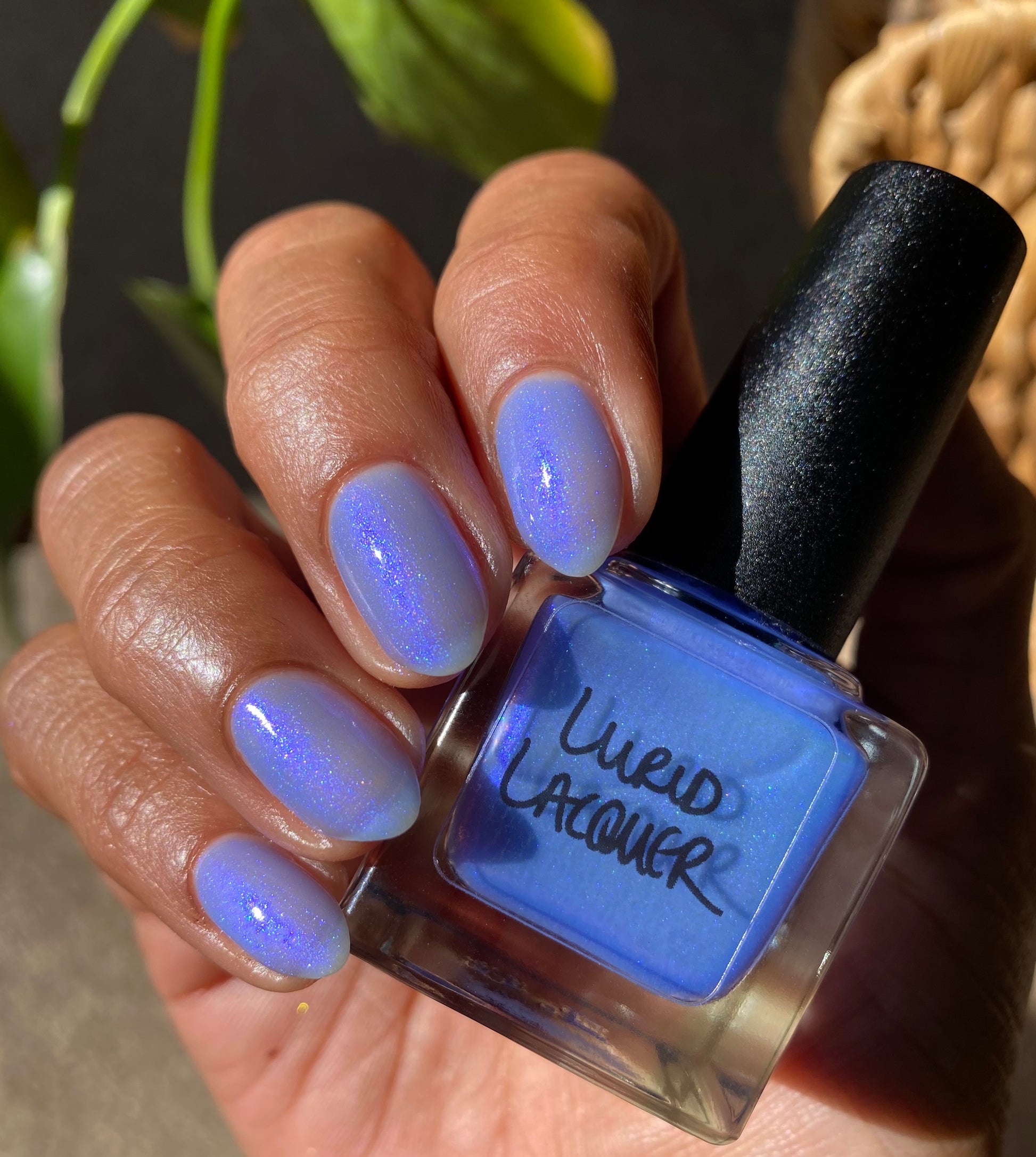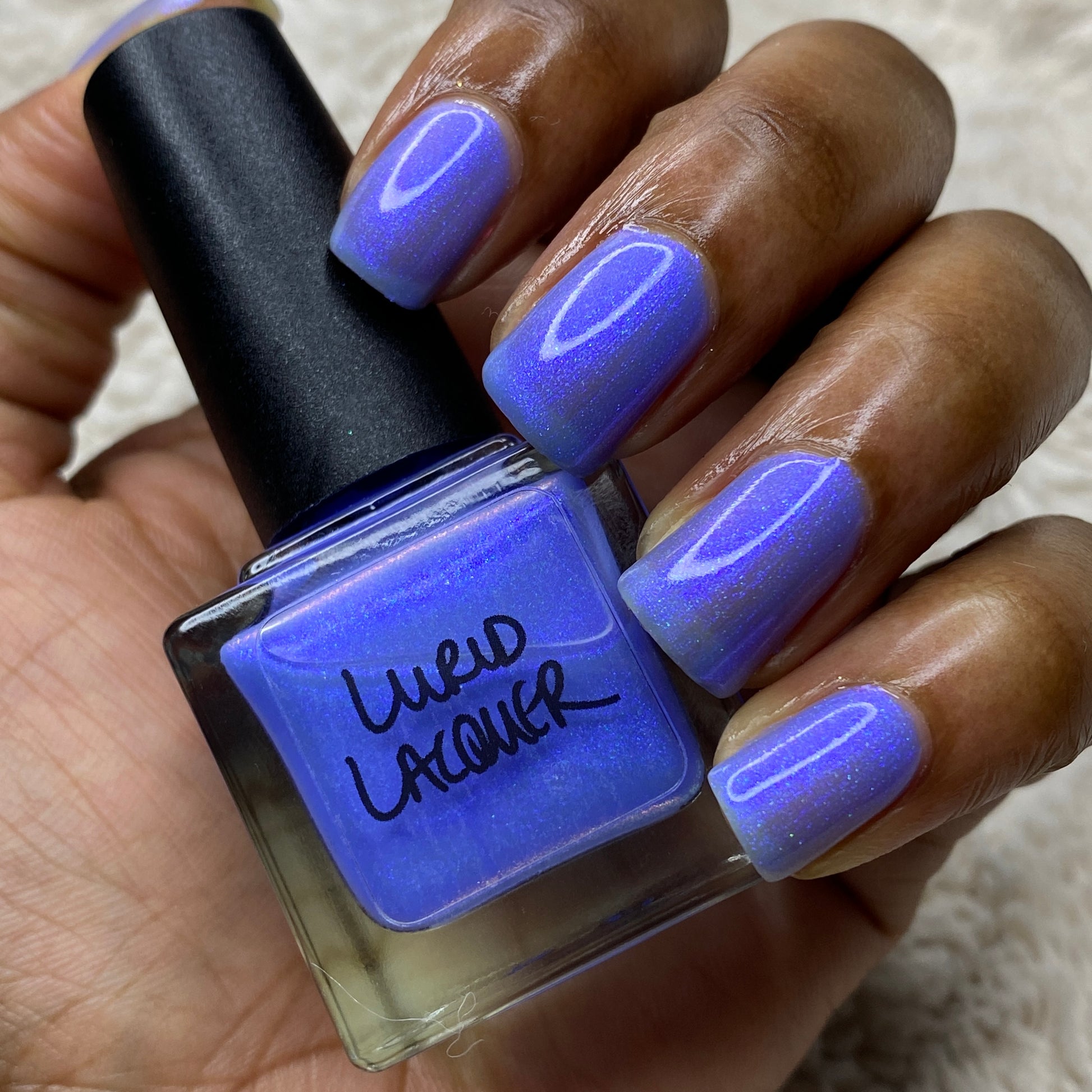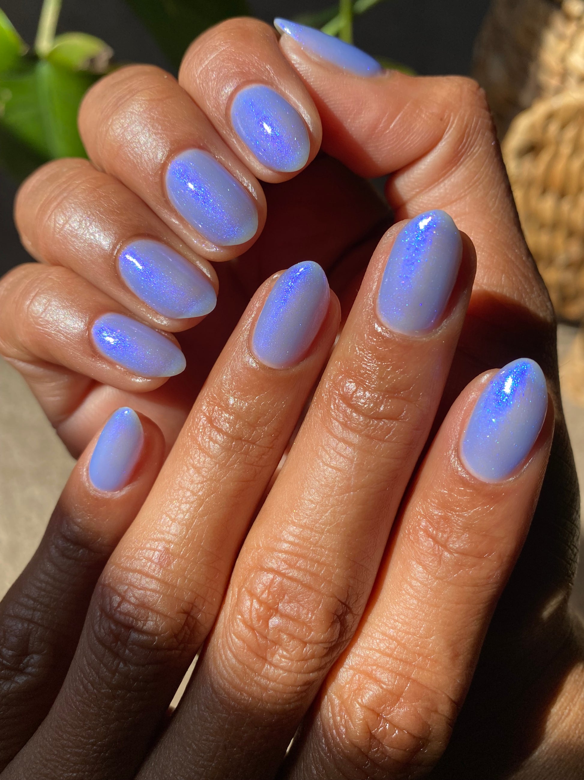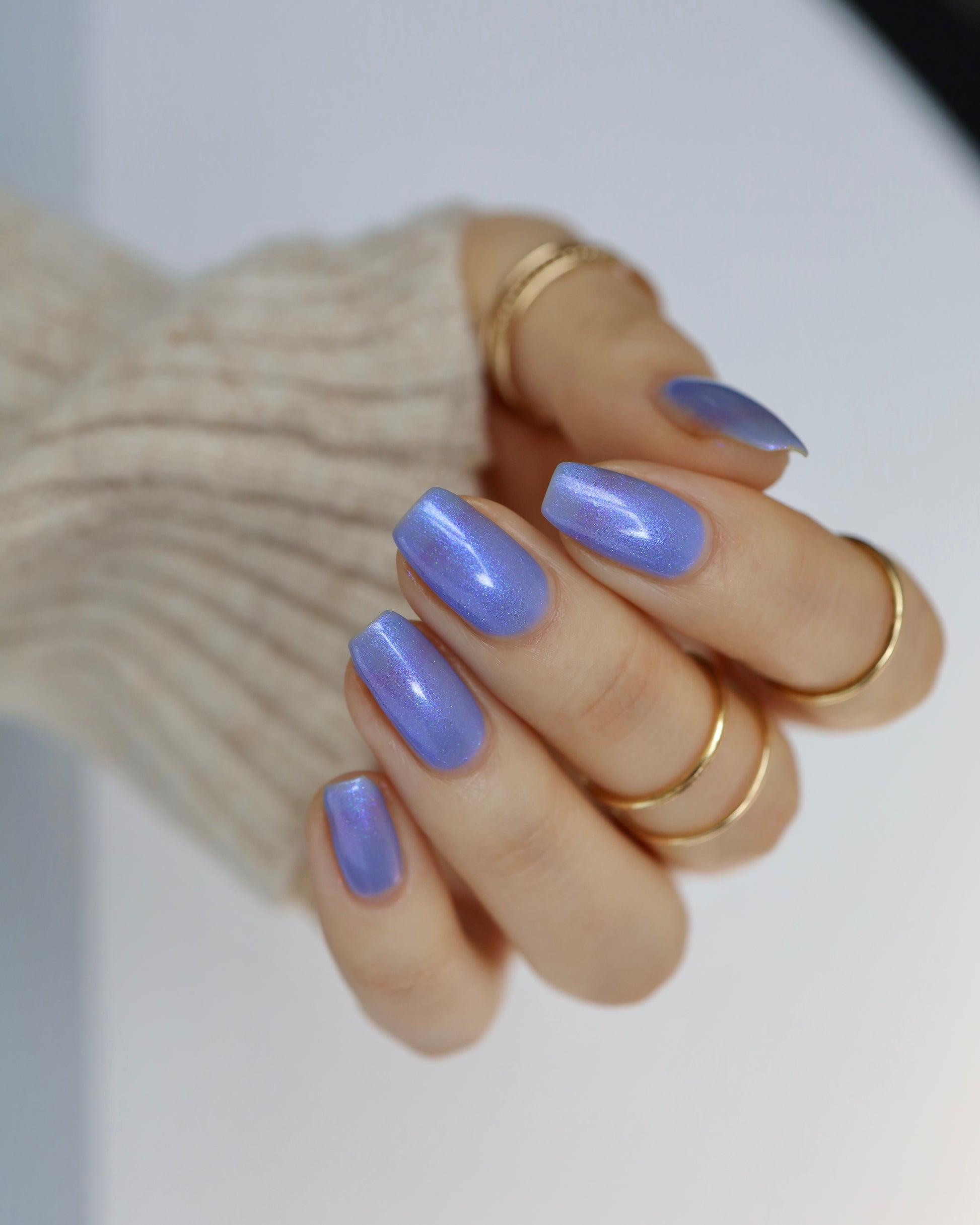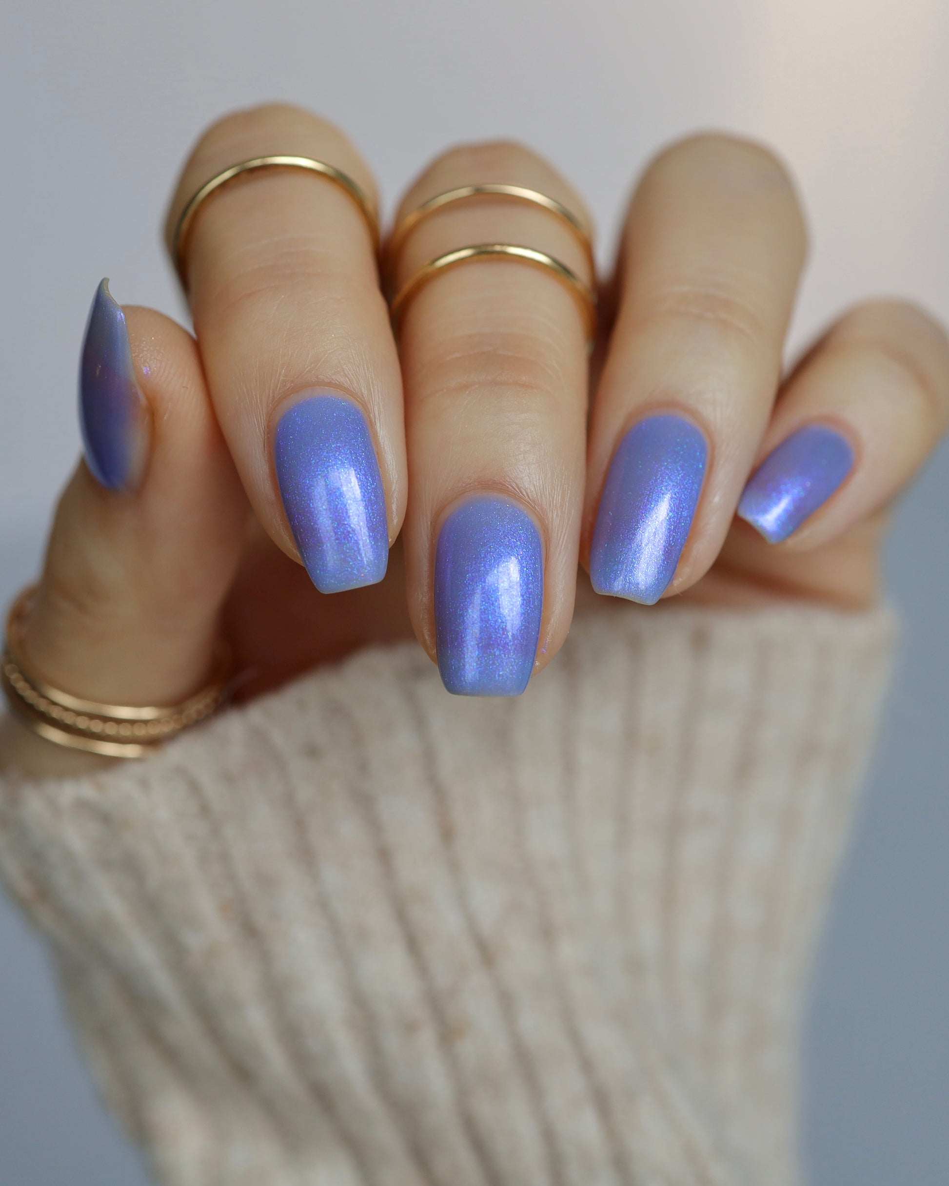 A periwinkle base with indigo shimmer that shifts to red at extremes