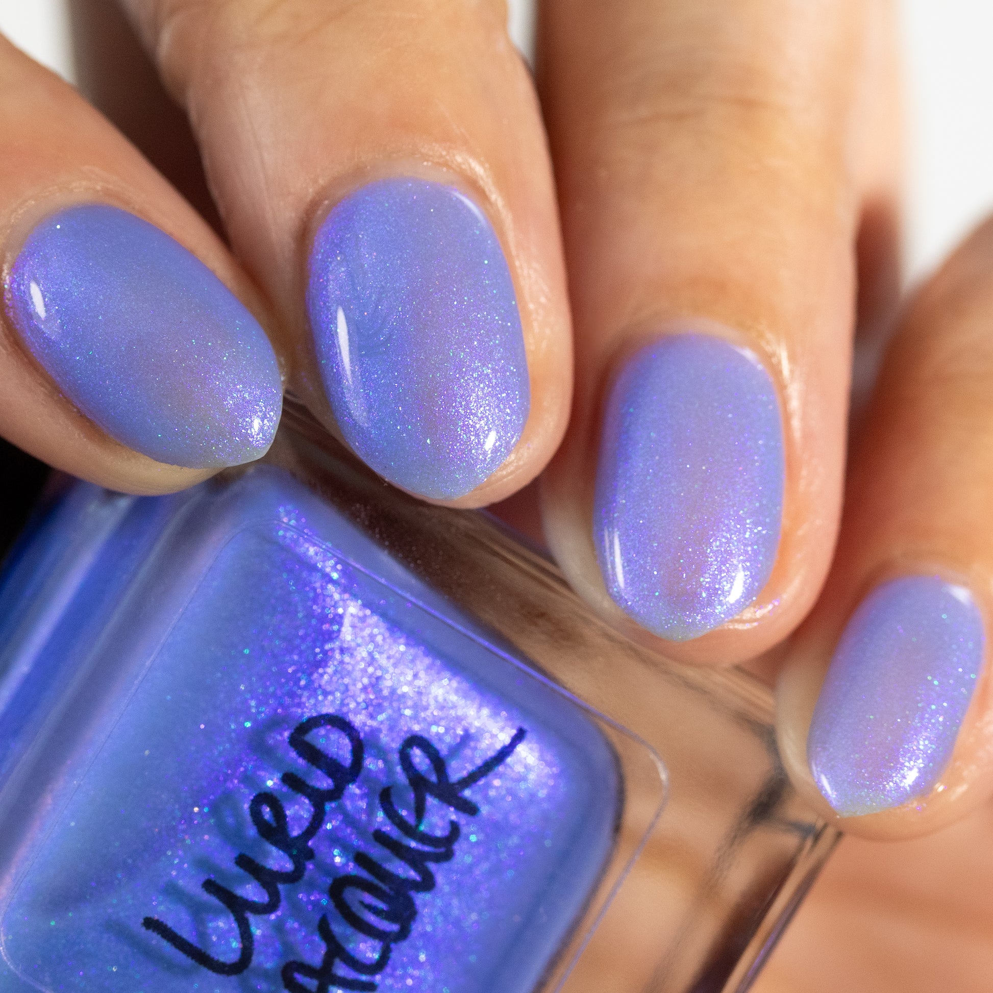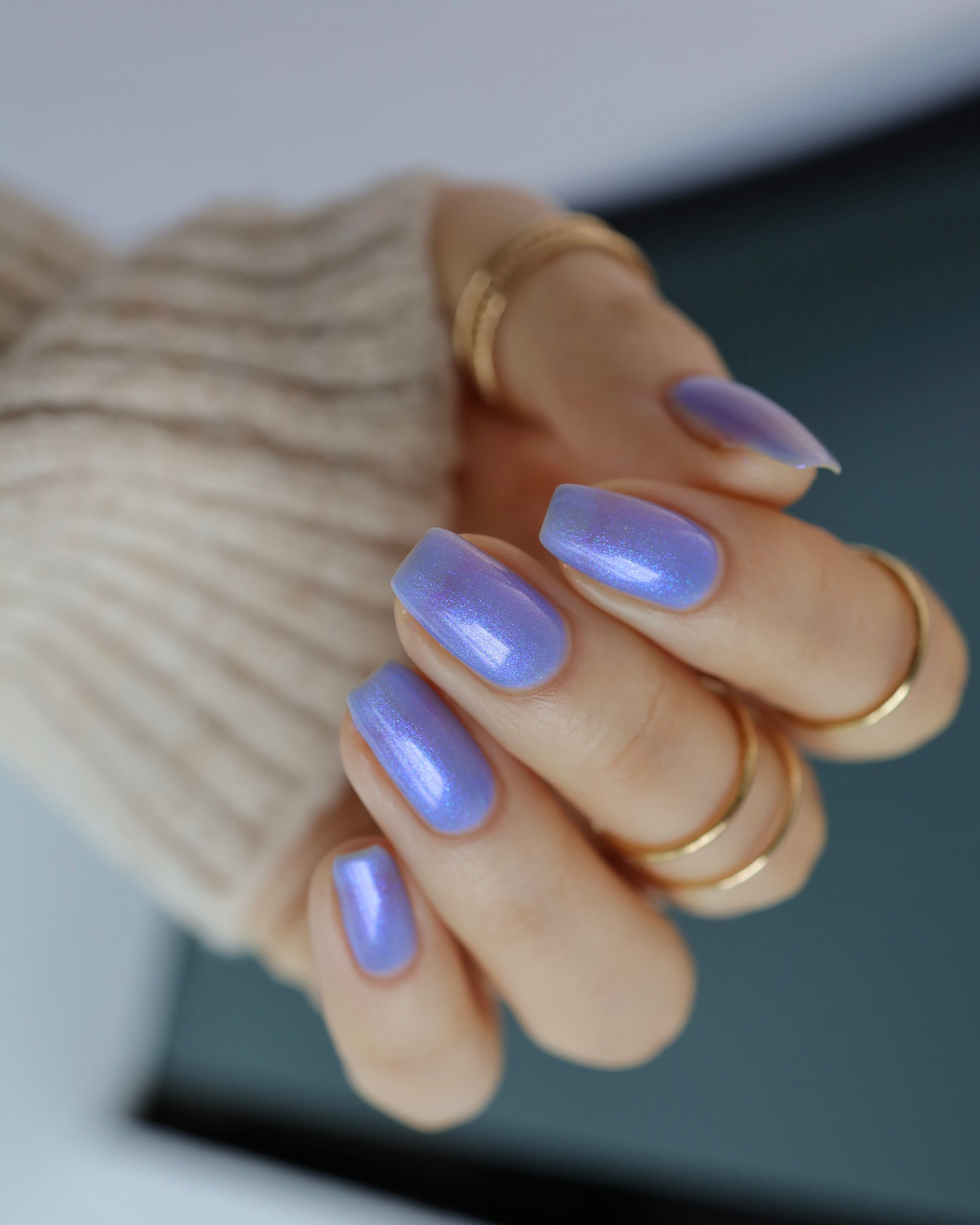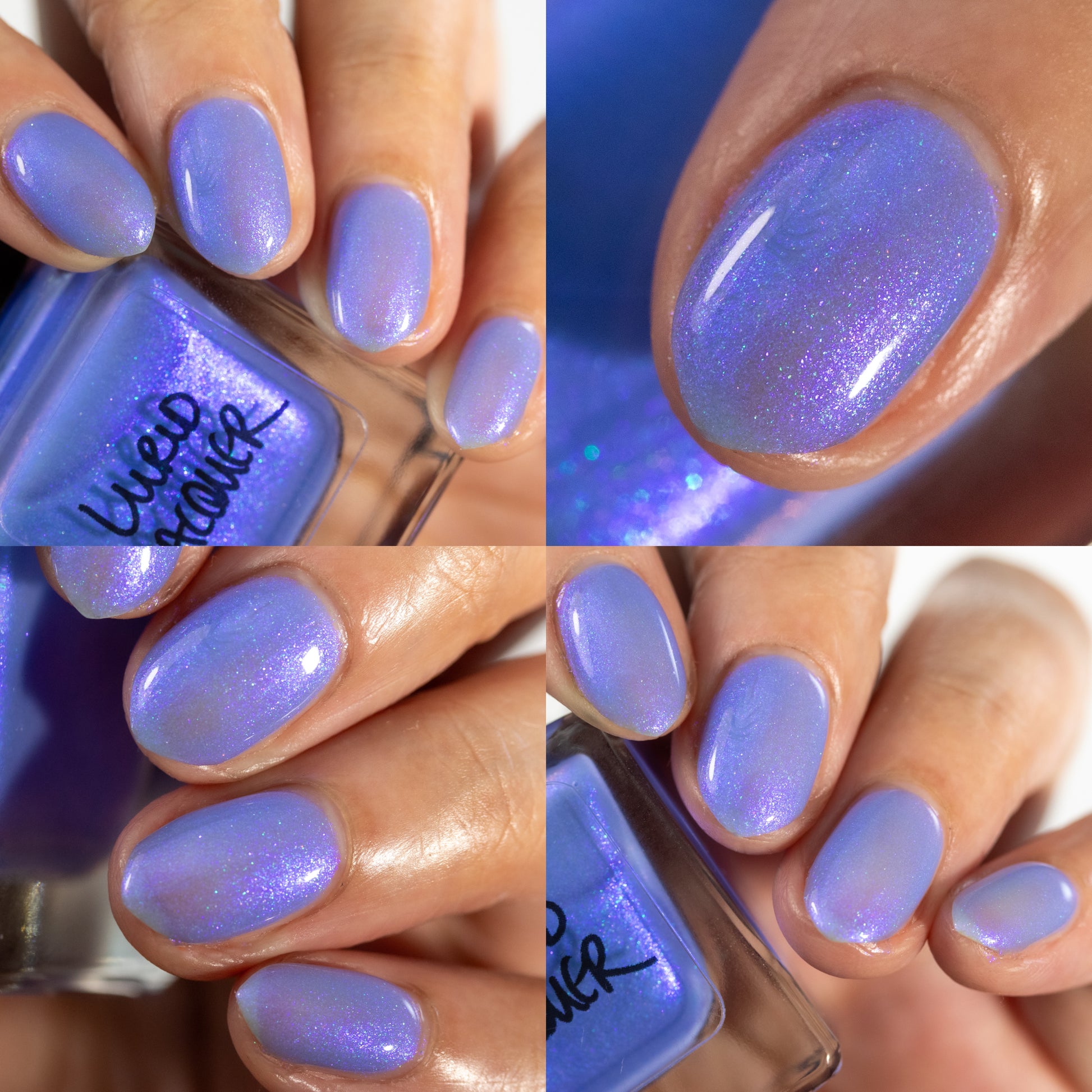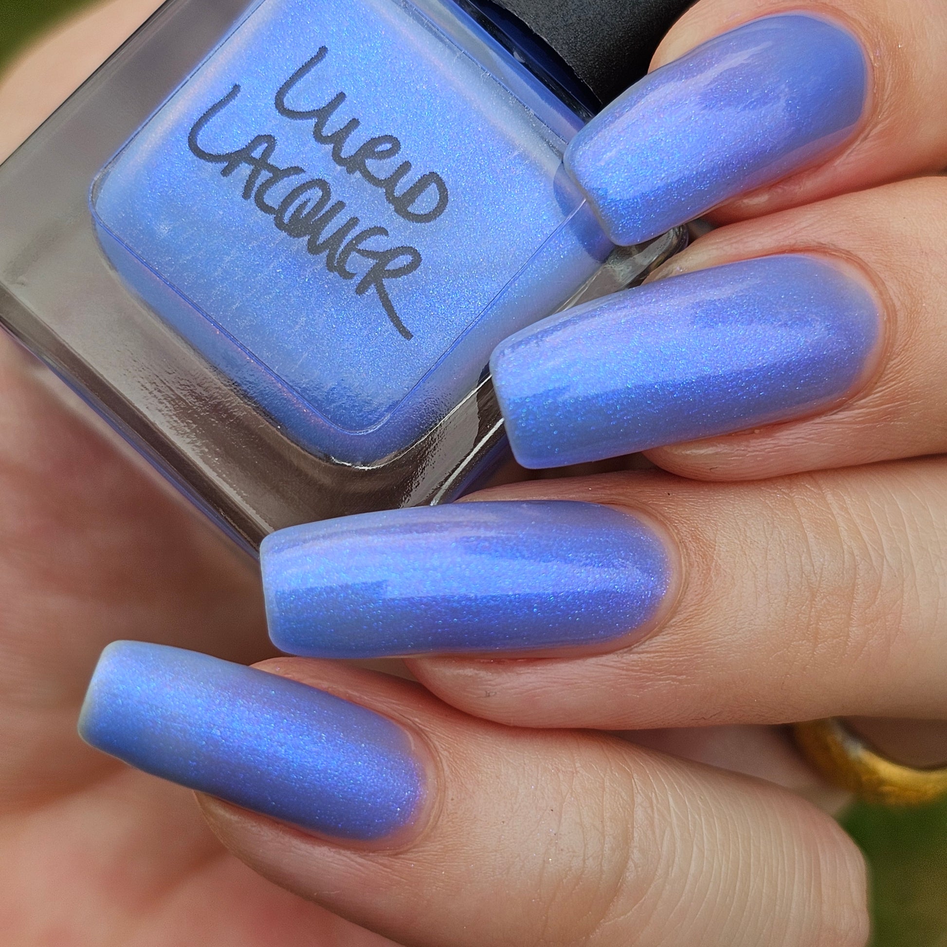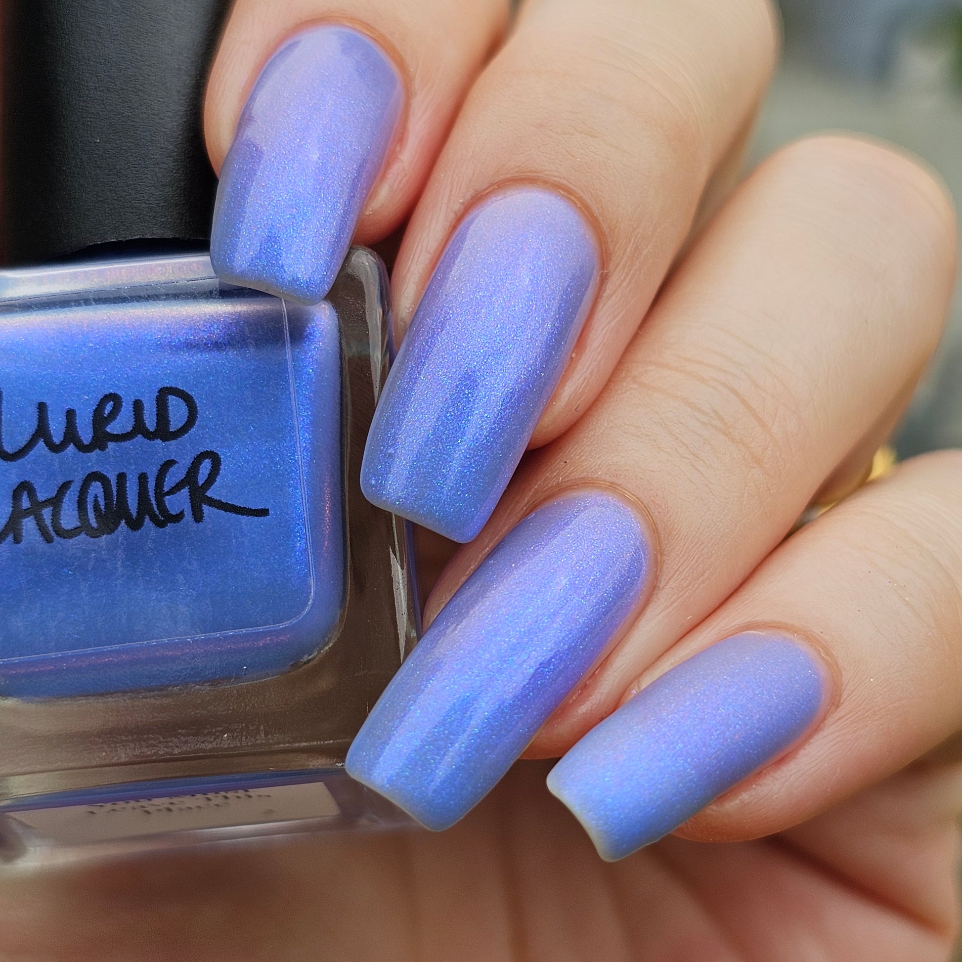 A periwinkle base with indigo shimmer that shifts to red at extremes