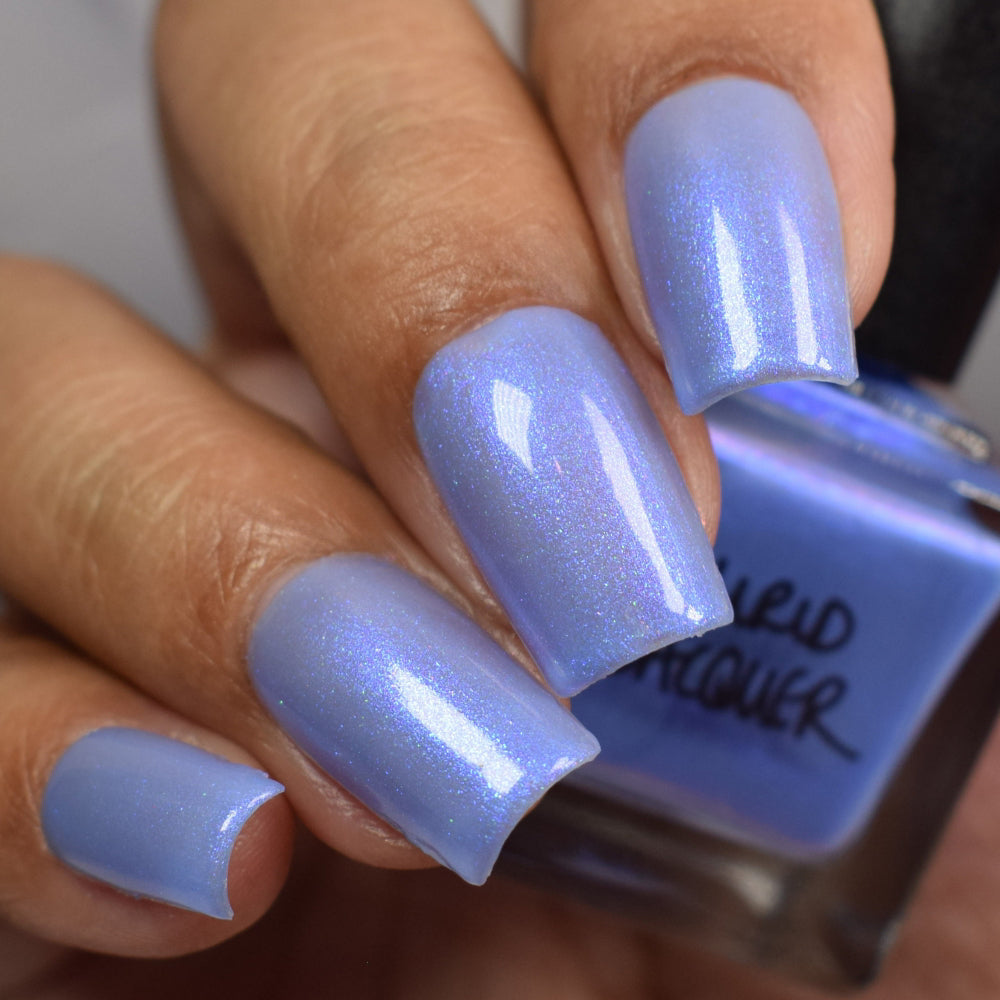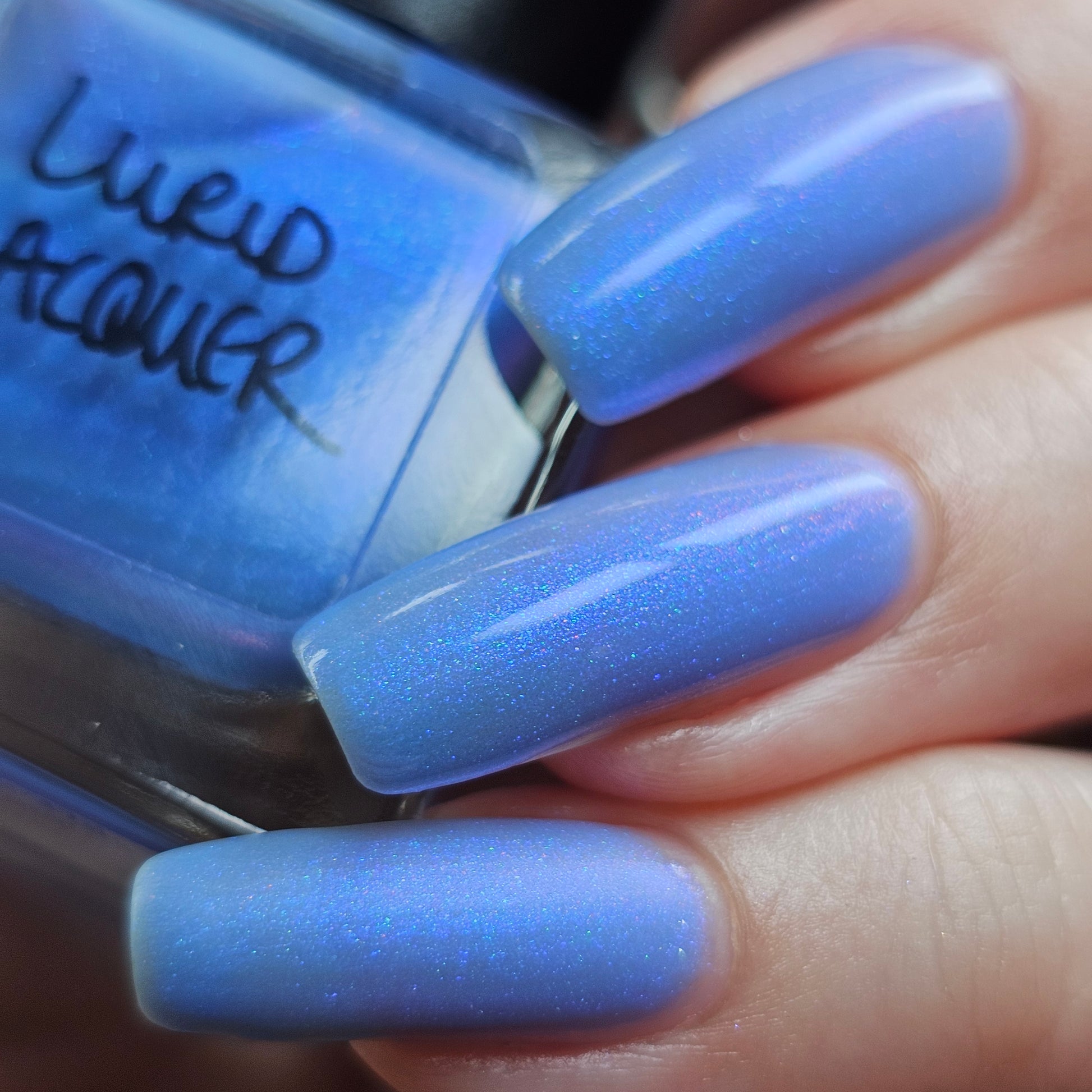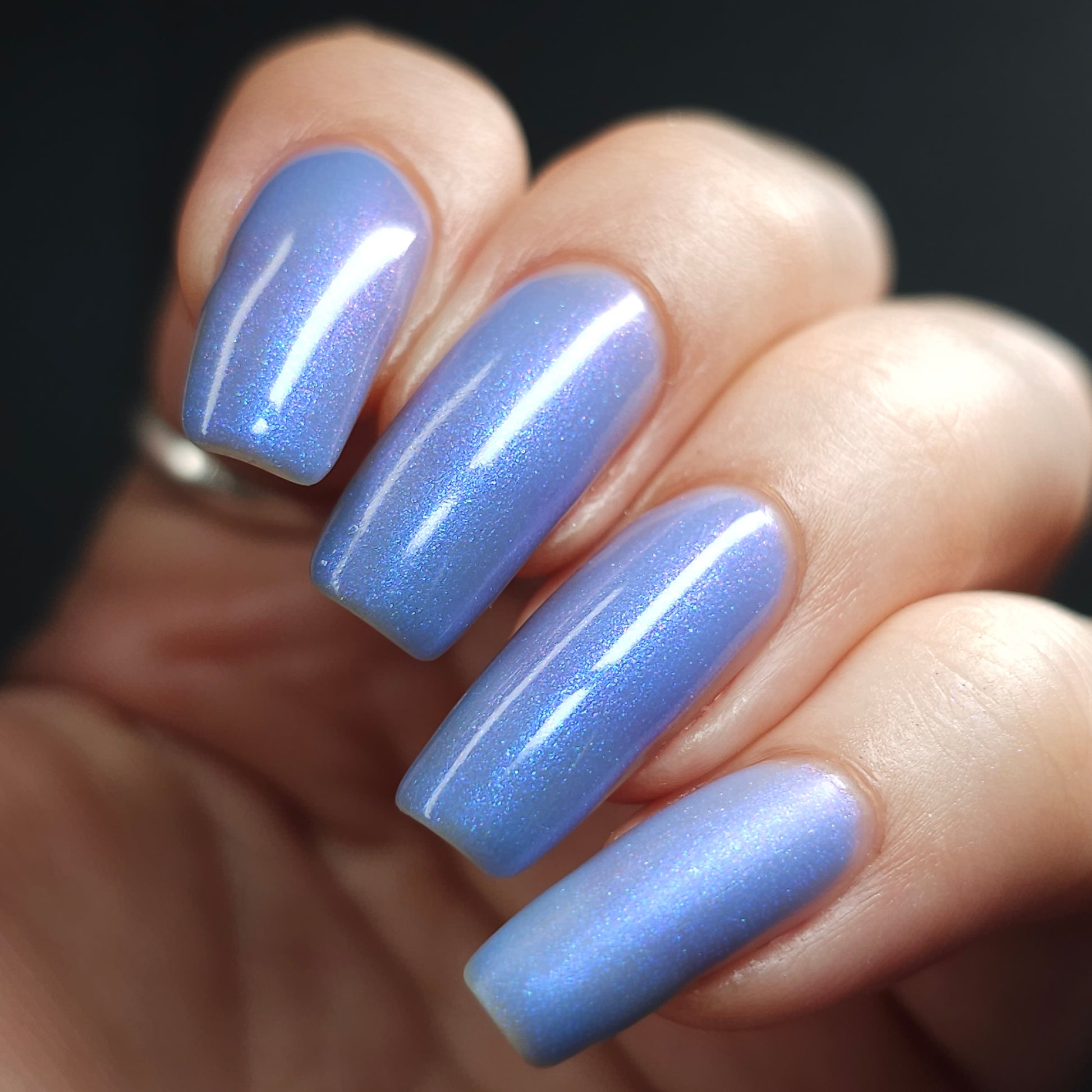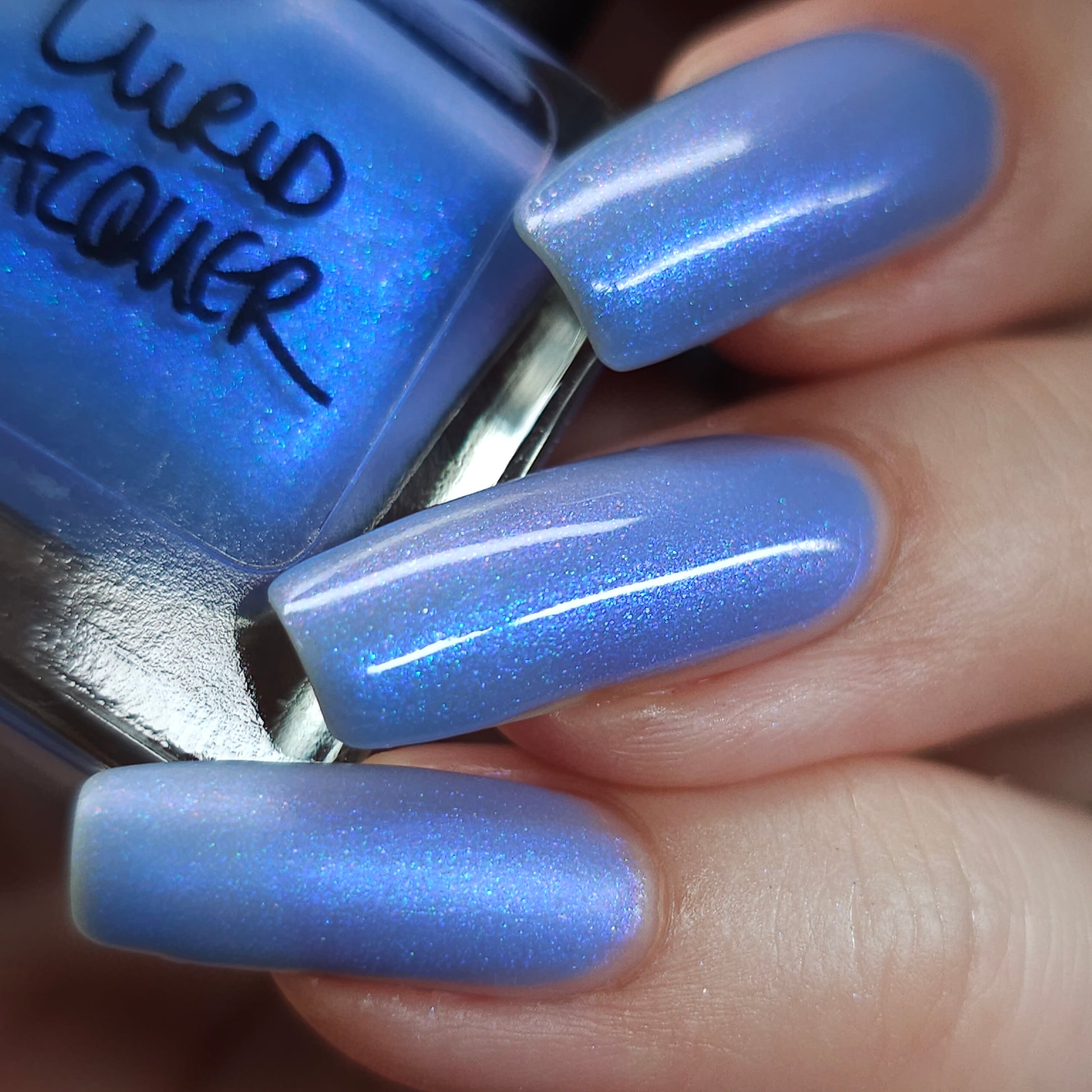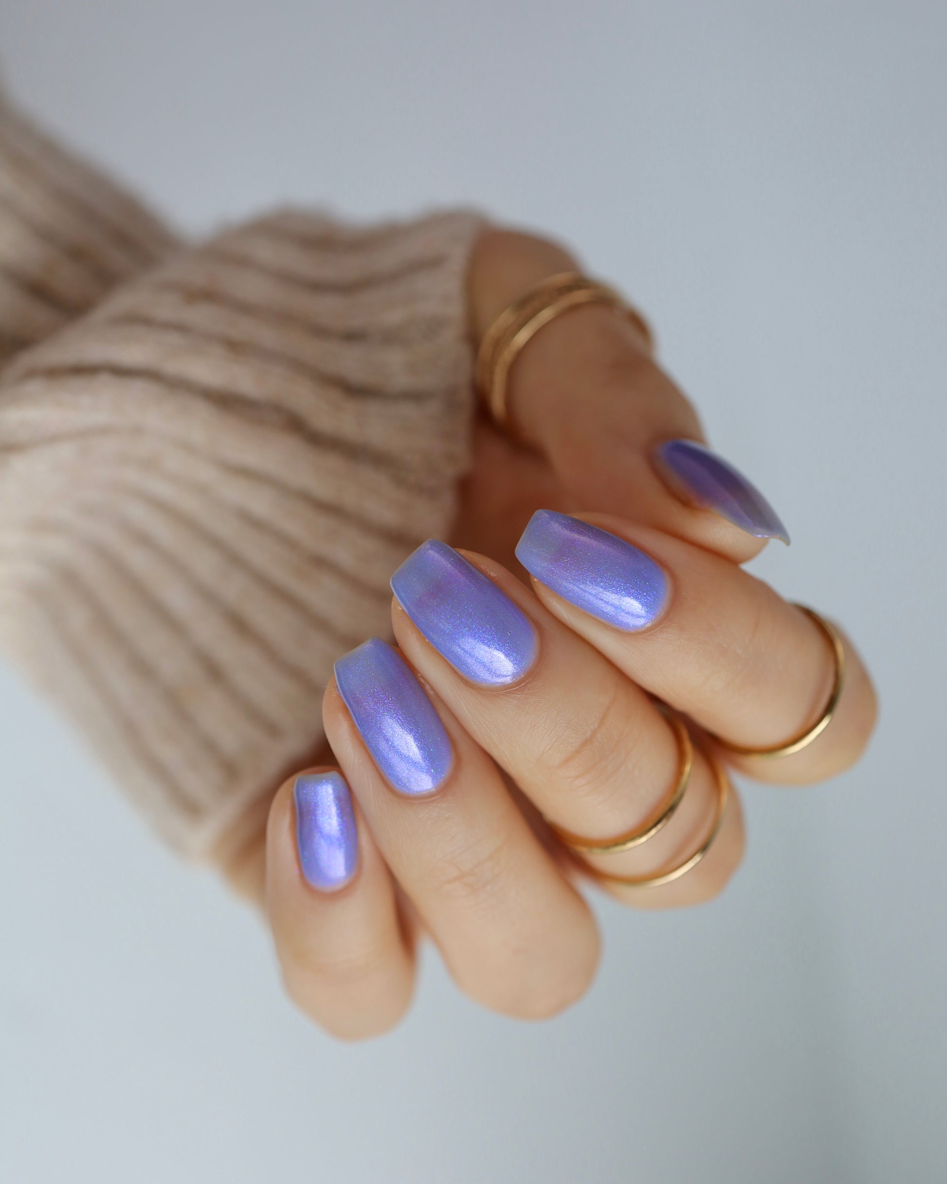 A periwinkle base with indigo shimmer that shifts to red at extremes
