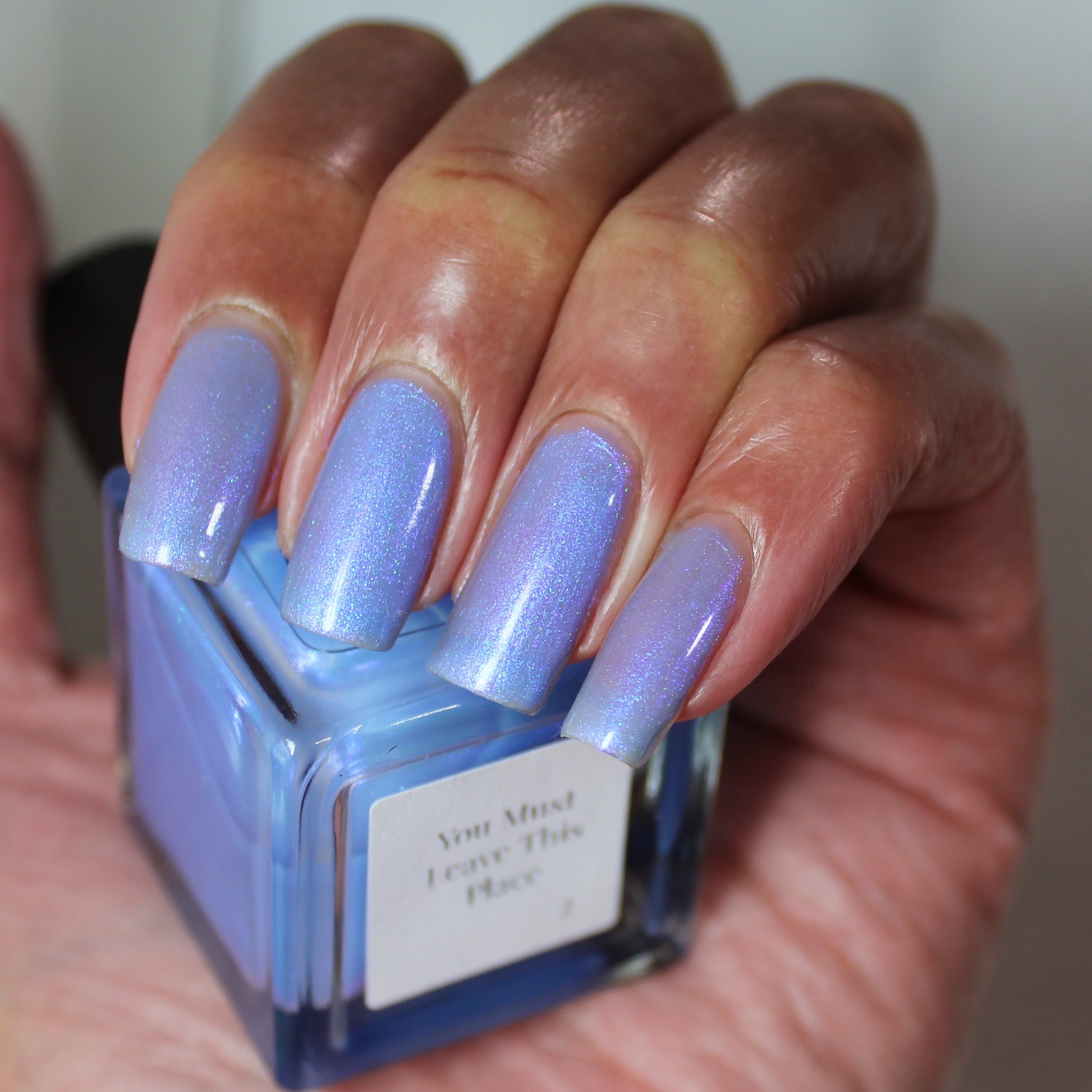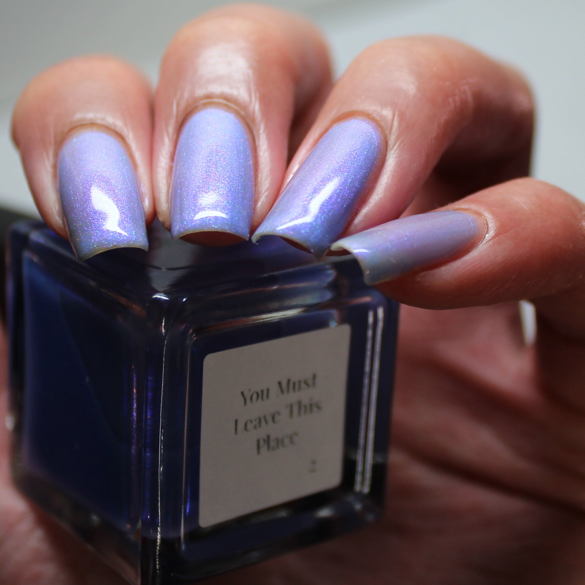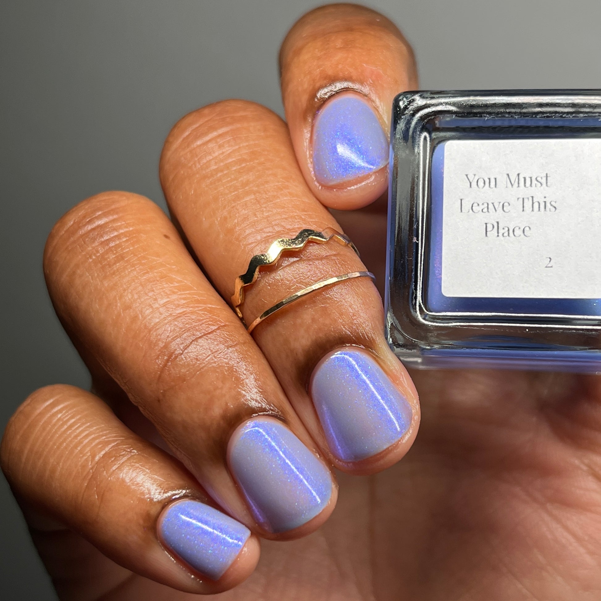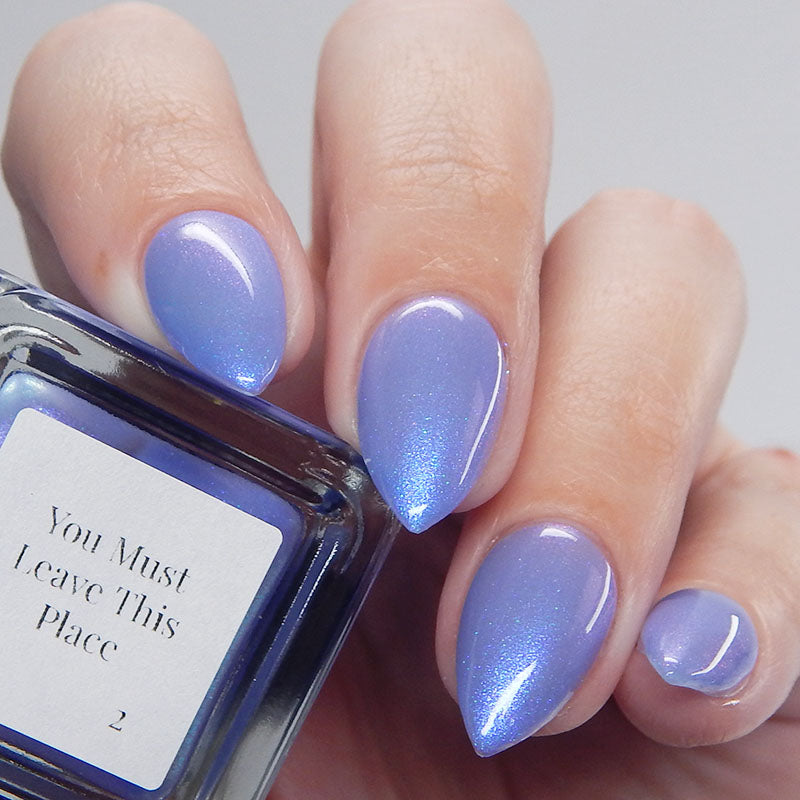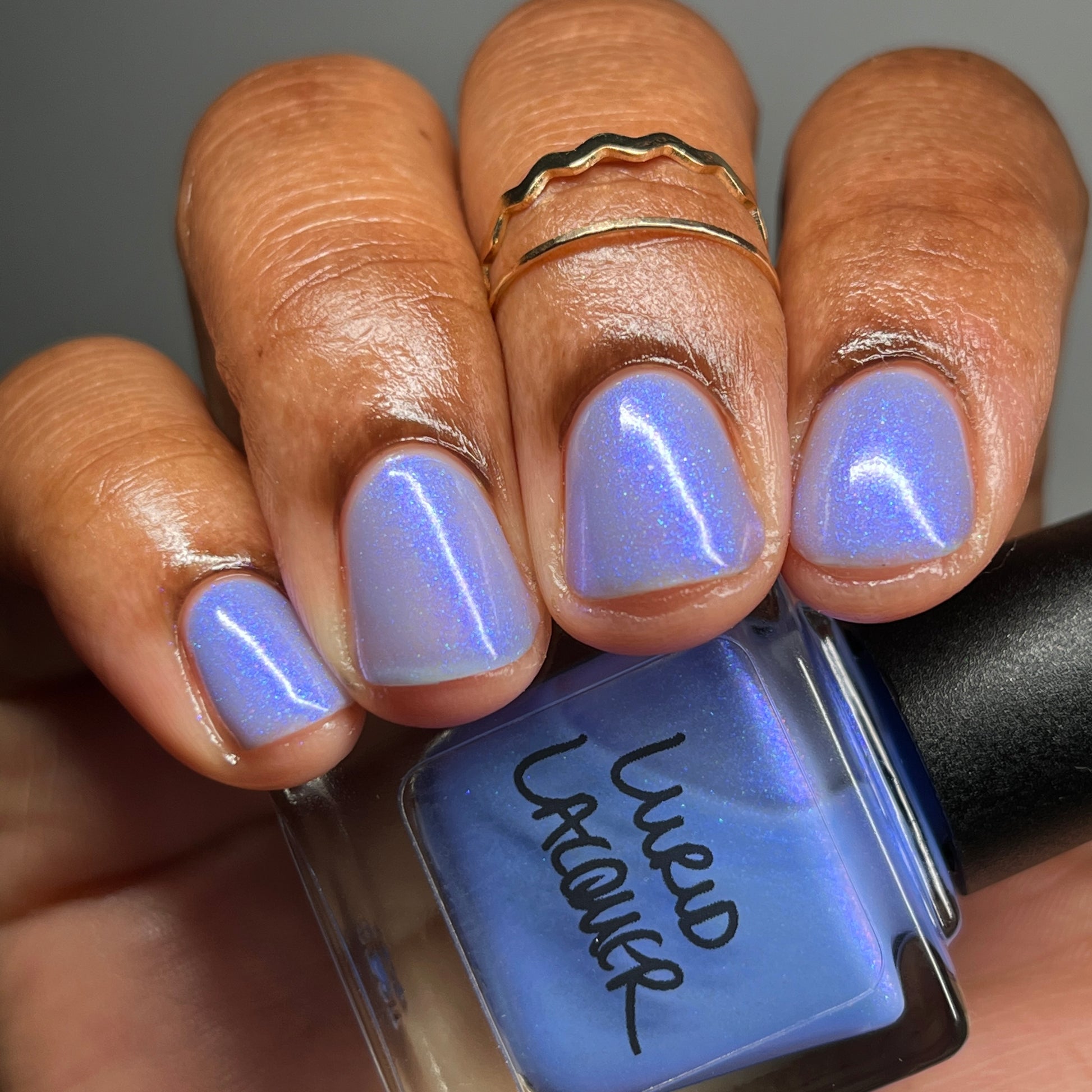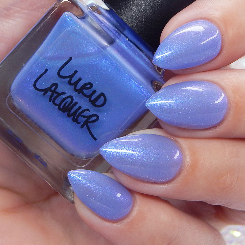 A periwinkle base with indigo shimmer that shifts to red at extremes